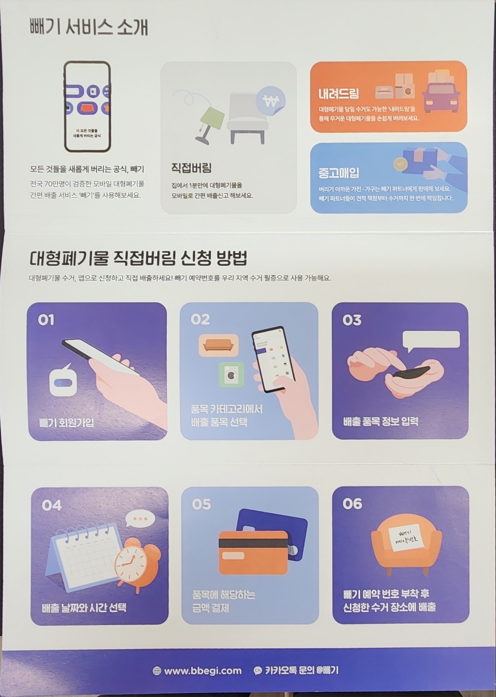 '빼기' 서비스는 대형 폐기물을 처리하는 데 있어서 가장 간편하고 효율적인 방법을 제공합니다. 직접 버림, 내려드림, 중고매입이라는 세 가지 주요 서비스는 사용자의 상황에 맞게 선택할 수 있으며, 각 서비스는 사용자에게 최대한의 편리함을 제공합니다. 대형 폐기물을 처리해야 한다면, '빼기' 서비스를 통해 간편하게 문제를 해결해 보세요.