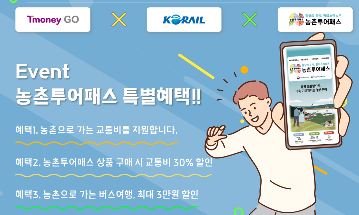 - 농촌투어패스 상품도 함께 이용할 경우: 해당 지역에 대한 교통비를 1만 원 한도 내에서 최대 30% 지원
