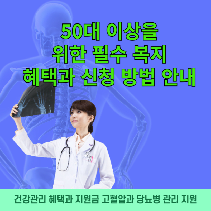 고혈압과 당뇨병은 50대 이상에서 매우 흔한 만성 질환입니다. 이 두 가지 질환은 건강을 위협하는 중요한 요인이므로, 적절한 관리가 필요합니다. 정부에서는 65세 이상의 고혈압 및 당뇨병 환자들을 대상으로 병원비와 약값, 진료비를 지원하는 프로그램을 운영하고 있습니다.
