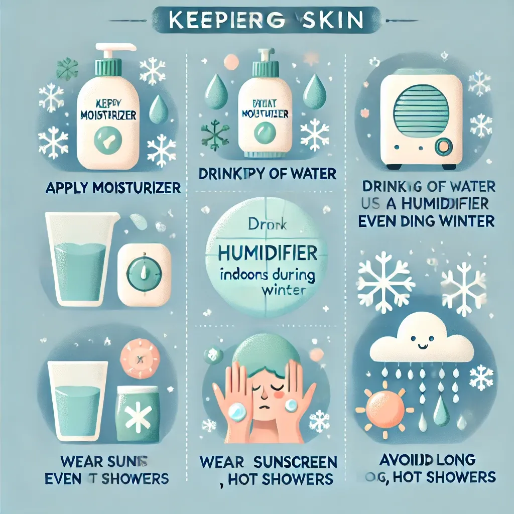 겨울철 피부 관리 방법을 소개합니다. 충분한 보습, 실내 습도 유지, 자외선 차단제 사용 등 피부를 촉촉하게 유지하는 팁을 확인해보세요