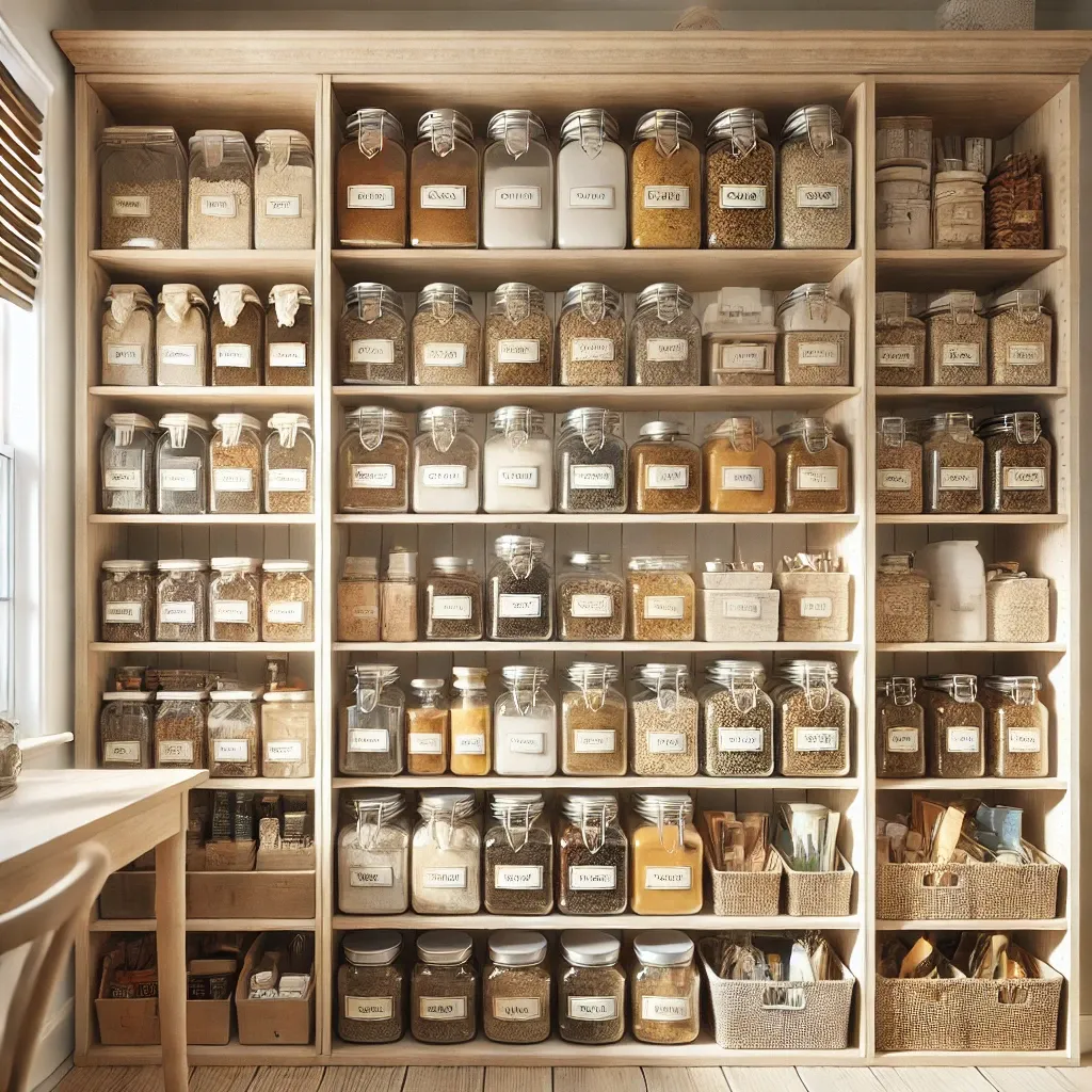 각 수납 용기에 라벨을 붙이면 찾는 물건을 쉽게 꺼낼 수 있습니다. 예를 들어 '설탕', '소금', '곡류' 등 필요한 용도를 적어두면 한눈에 파악하기 좋습니다.