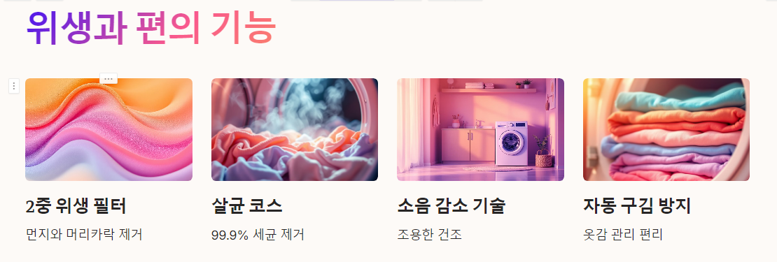 이런 기술은 바쁜 현대인들에게 매우 유용하며, 특히 스팀 기능은 탈취 및 살균 효과가 뛰어나 위생적인 세탁 환경을 제공합니다.