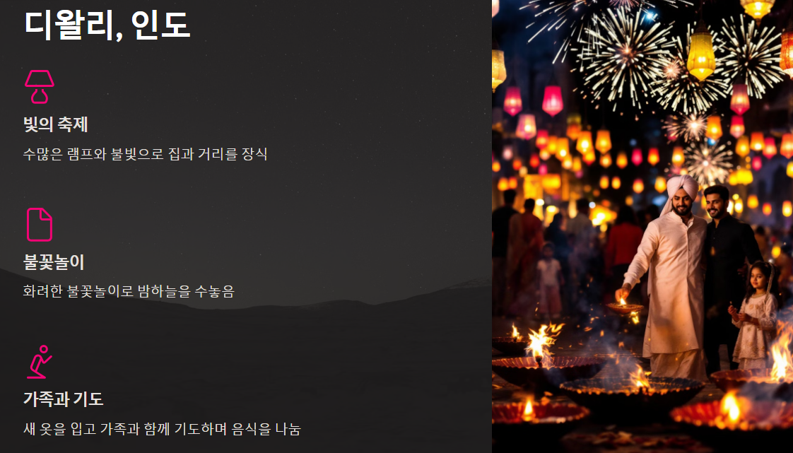 디왈리는 인도의 빛의 축제로, 힌두교 신앙에서 유래된 전통적인 행사입니다.