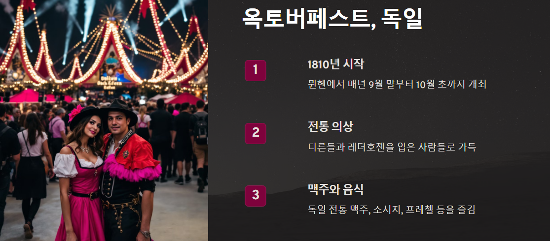 옥토버페스트는 맥주 애호가와 문화 체험을 원하는 사람들에게 완벽한 선택입니다.