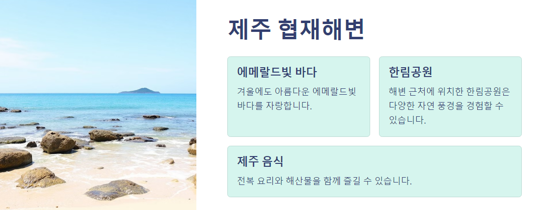 제주 협재해변은 겨울에도 아름다운 에메랄드빛 바다를 자랑합니다.