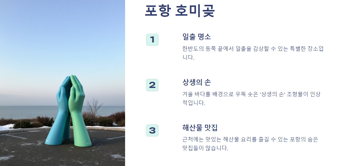 근처에는 맛있는 해산물 요리를 즐길 수 있는 포항의 숨은 맛집들이 많습니다.