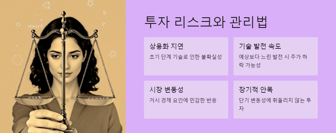 A2. 네, 기술 상용화 지연, 시장 변동성, 기술적 한계 등이 주요 리스크로 꼽혀요. 하지만 장기적인 관점에서 성장 가능성도 높아요.