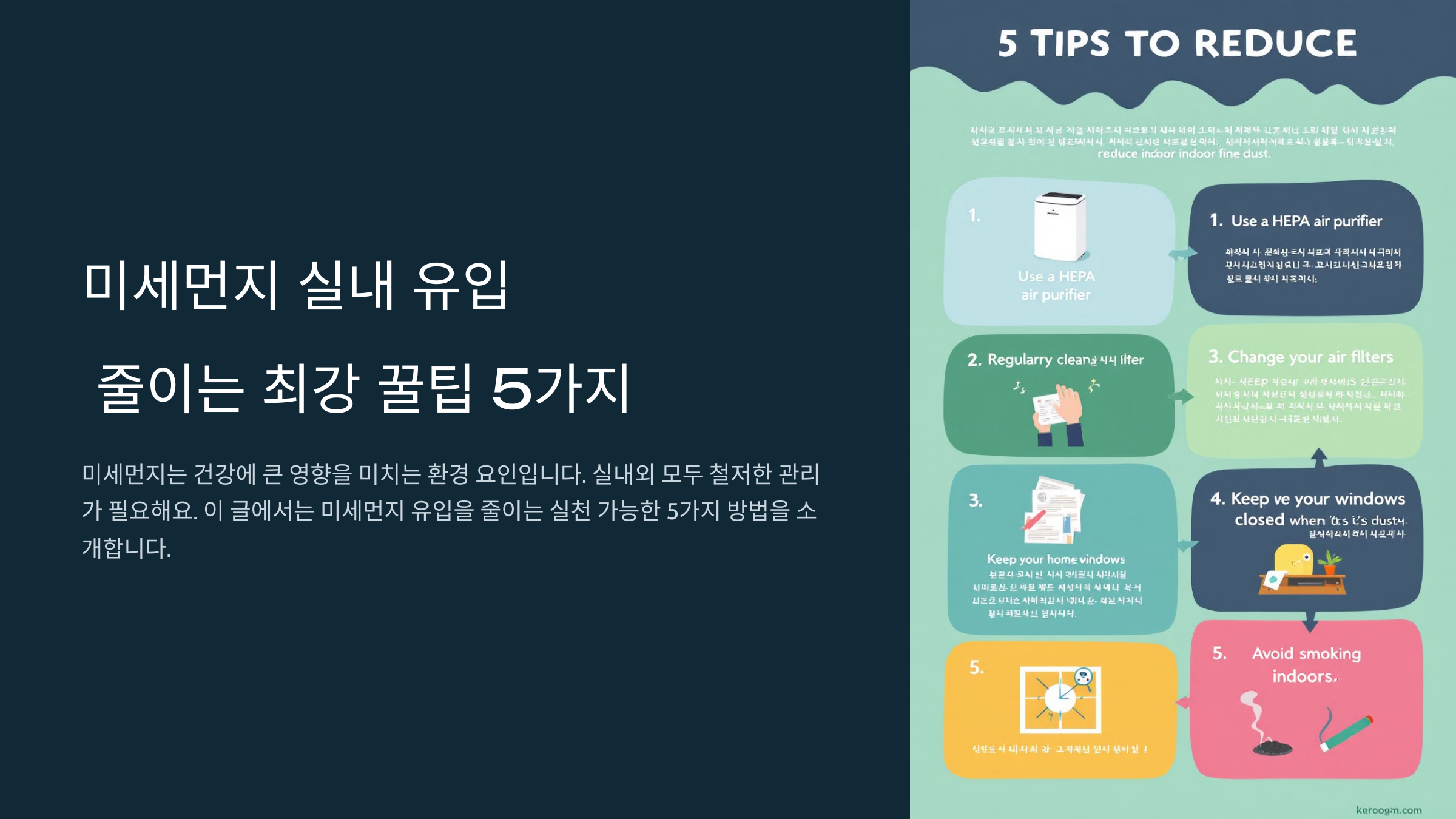 미세먼지는 건강에 큰 영향을 미칠 수 있는 환경 요인으로, 실외뿐 아니라 실내에서도 철저히 관리해야 해요. 실내로 유입되는 미세먼지를 효과적으로 차단하고 건강한 환경을 유지하려면 몇 가지 꿀팁을 활용하는 것이 중요하답니다.