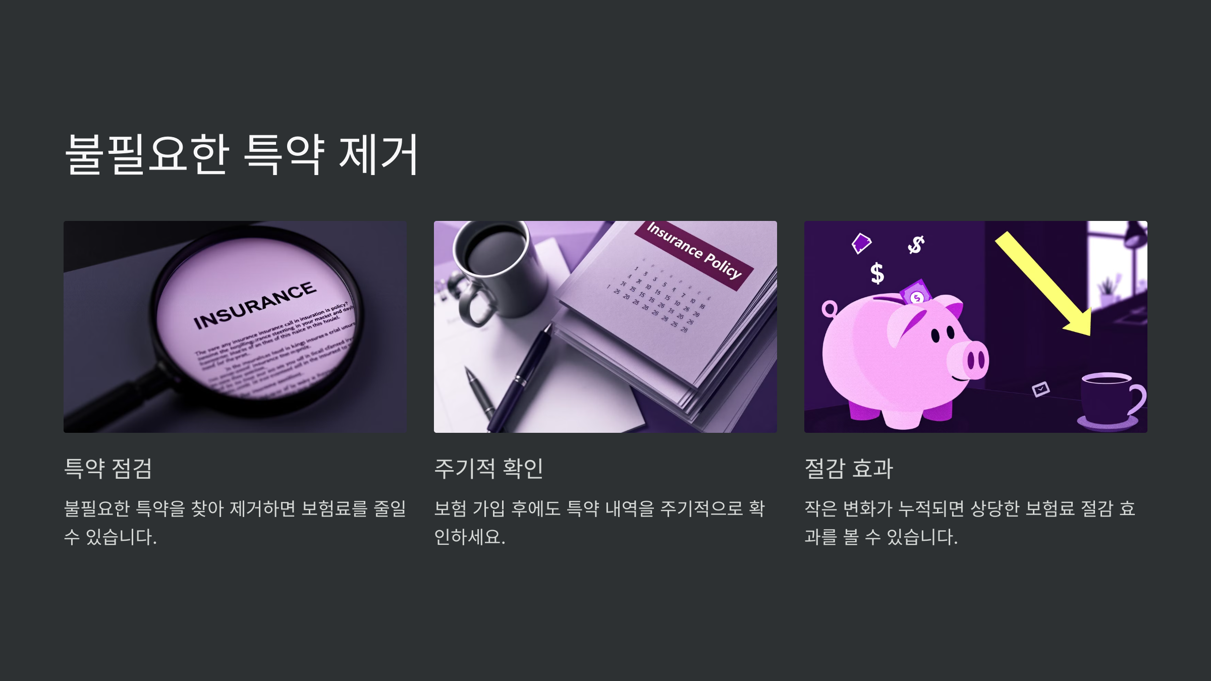 보험 가입 후에도 특약 내역을 주기적으로 확인하면서 내게 불필요한 항목이 포함되어 있는지 점검해 보세요. 이런 작은 변화가 누적되면 상당한 보험료 절감 효과를 볼 수 있어요! 🚘