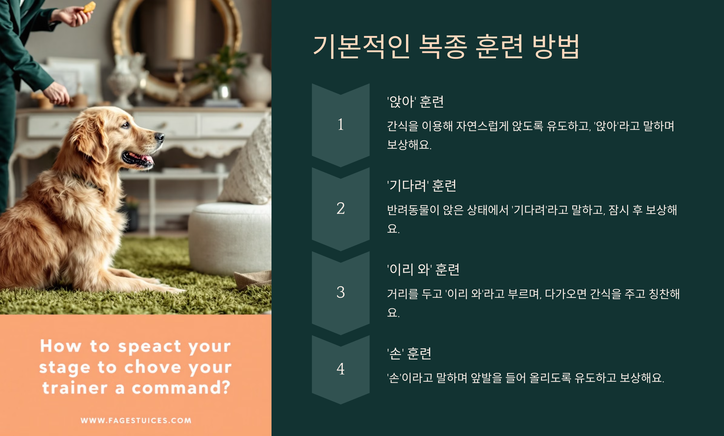내가 생각했을 때, 반려동물 훈련의 핵심은 일관성과 긍정적인 보상인 것 같아요! 꾸준히 연습하면 반려동물이 자연스럽게 명령어를 따를 거예요. 😊