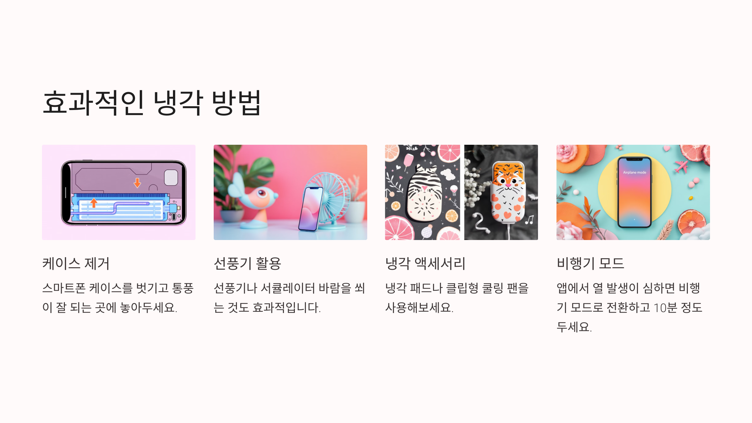 열은 스마트폰의 적이에요. 평소 냉각 습관만 잘 잡아도 성능 저하와 수명 단축을 충분히 막을 수 있어요. 😊