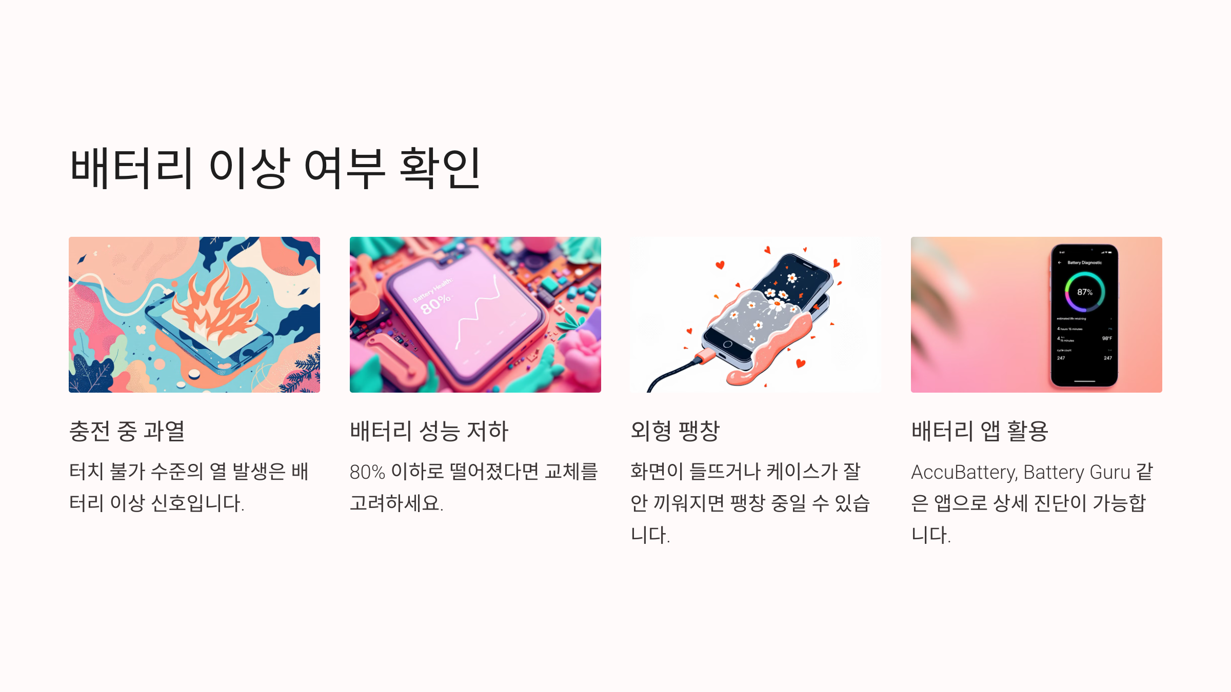 배터리 팽창은 반드시 육안으로도 확인해봐야 해요. 화면이 미세하게 들뜬 느낌이 있거나, 케이스가 잘 안 끼워지면 이미 팽창 중일 수 있어요.