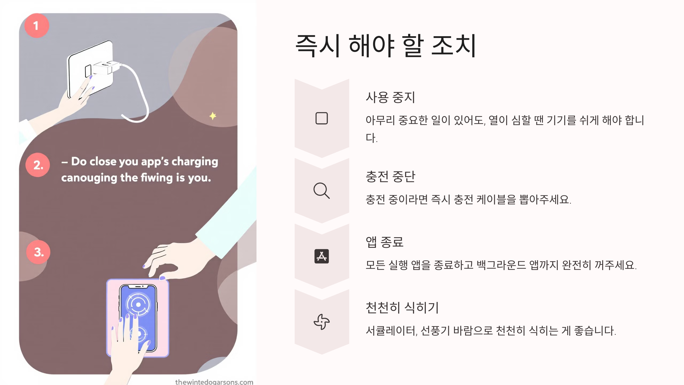 내가 생각했을 때 가장 중요한 건 **즉시 멈추는 습관**이에요. 사용 중단, 앱 종료, 냉각 시작! 지금부터 하나씩 알려줄게요. 😎