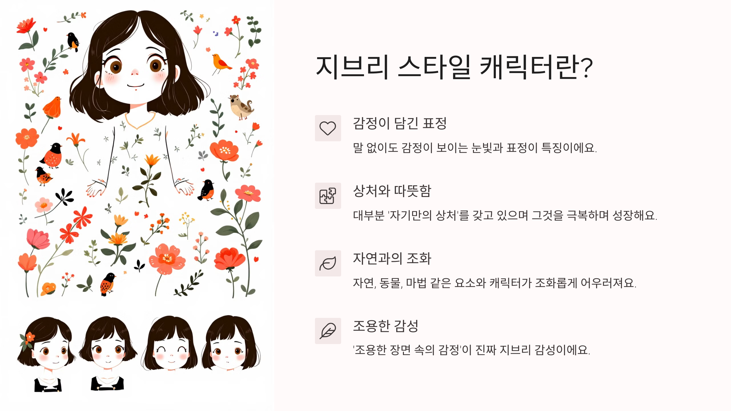 지브리풍 캐릭터는 그 자체만으로도 특별하지만, 진짜 감동을 주는 건 바로 ‘배경 이야기’예요. 등장인물이 왜 그런 표정을 짓고 있는지, 그 풍경 속에서 어떤 기억을 품고 있는지까지 연결돼야 비로소 마음을 울리는 캐릭터가 돼요.
