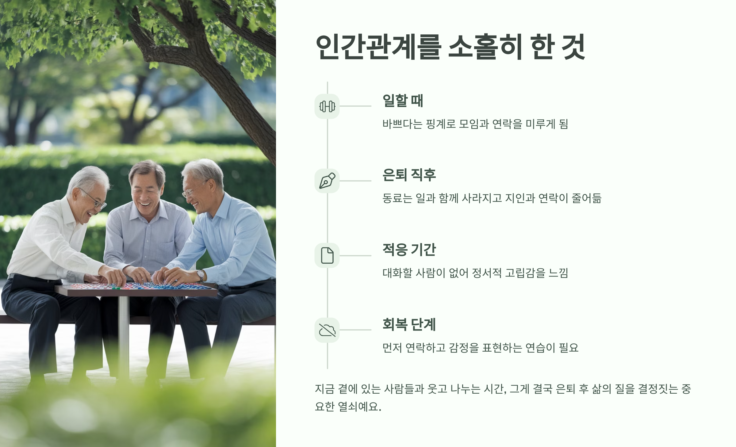 실제로 은퇴 후 고향 친구에게 전화를 걸었다가 “이제야 연락하냐”는 말을 듣고 마음의 상처를 받은 사례도 있어요. 서운함이 쌓이면 관계 회복도 쉽지 않죠.