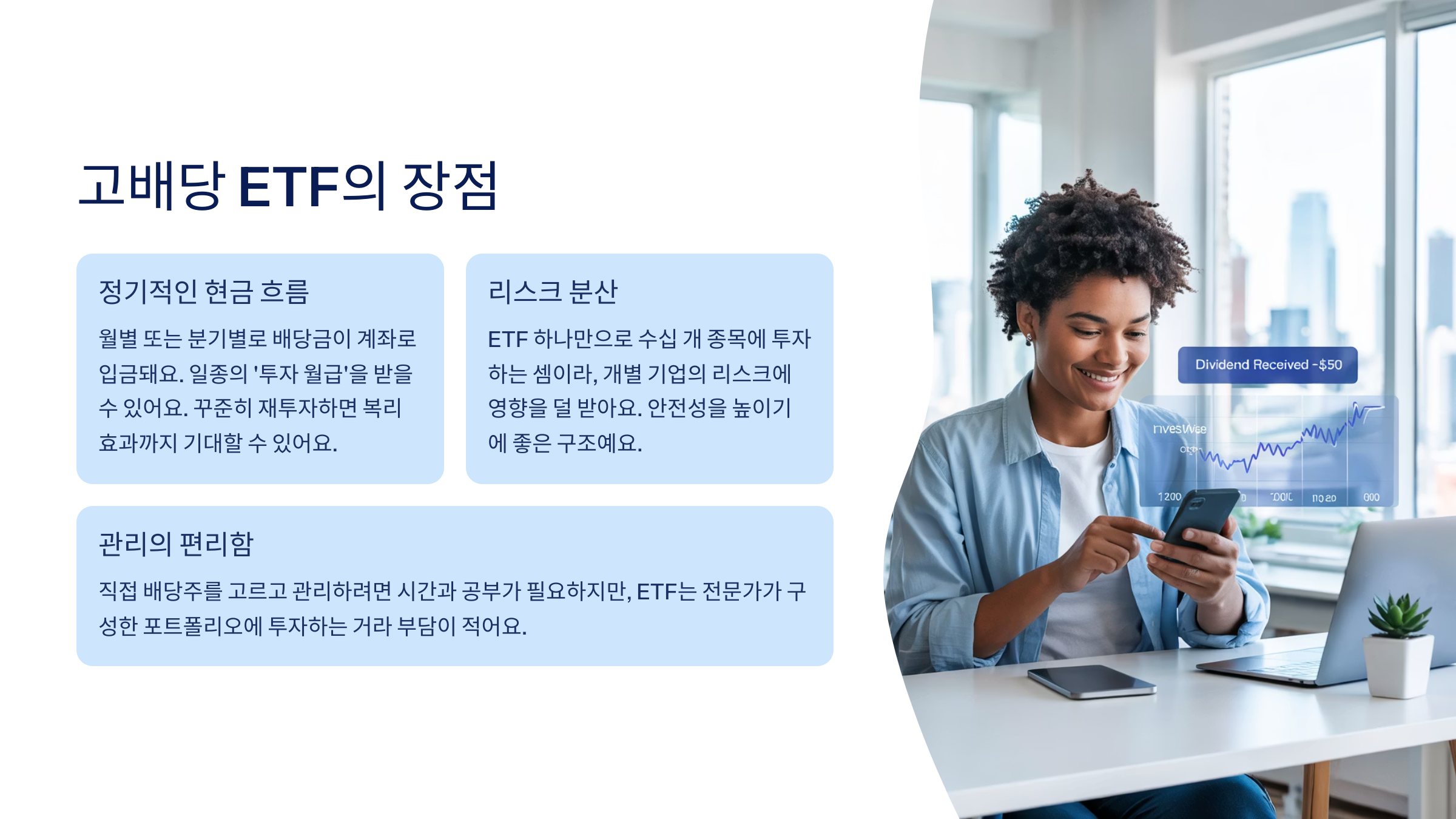 👇 다음은 고배당 ETF가 사랑받는 이유, 주요 장점들을 정리해드릴게요!