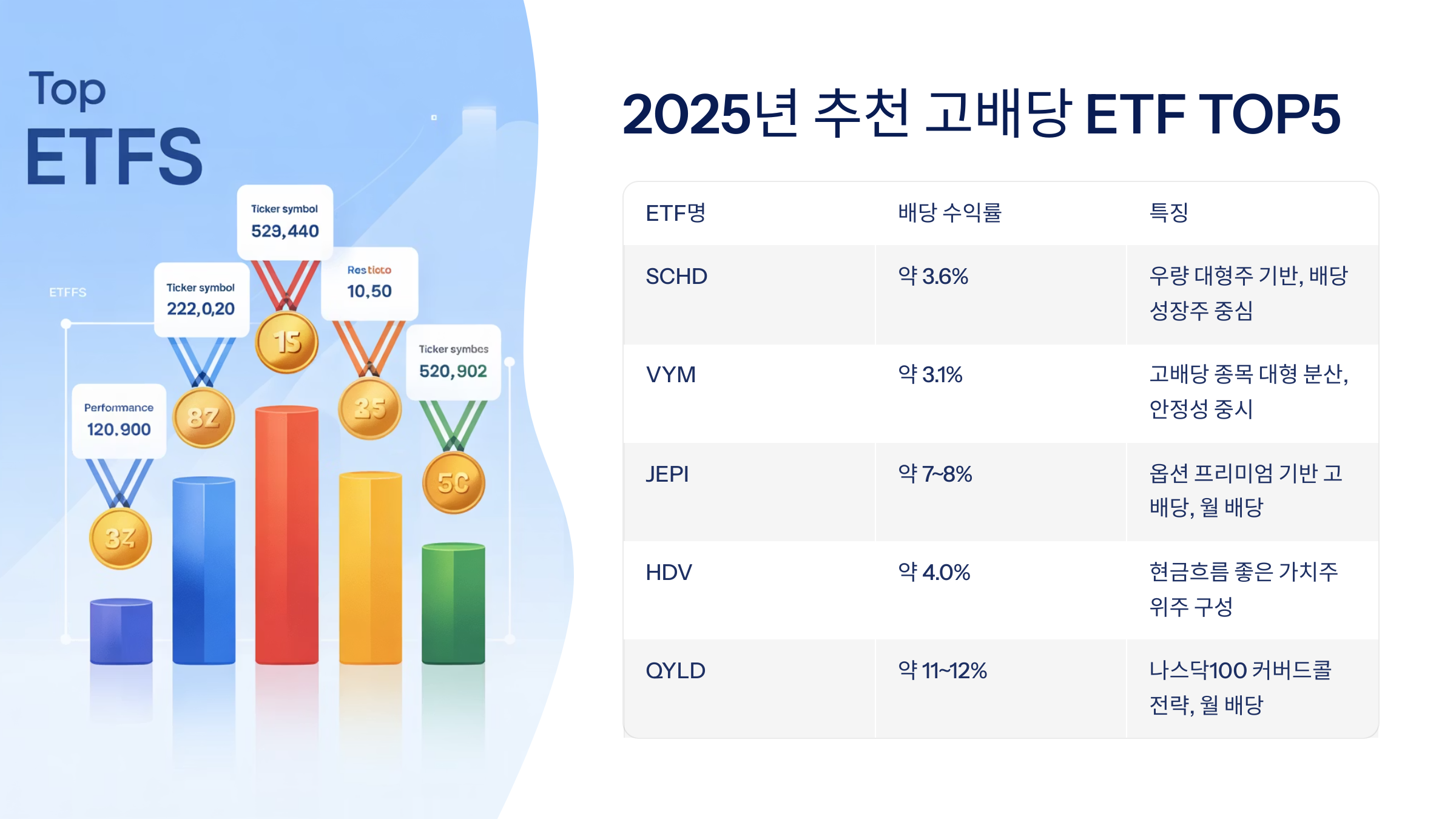 👇 다음은 2025년 기준 추천할 만한 고배당 ETF TOP5를 소개할게요!