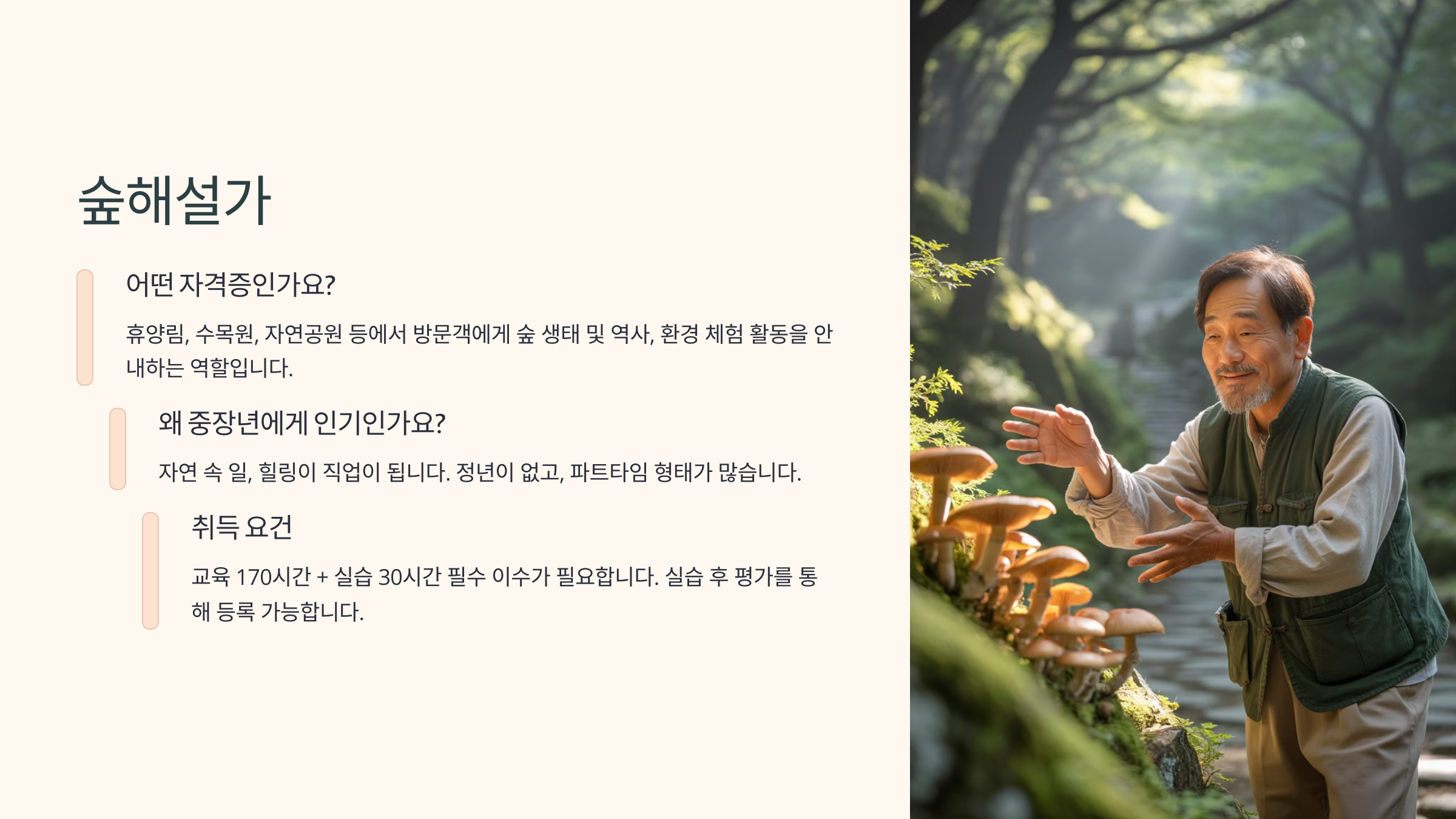 ‘평생직장’이라는 개념은 사라지고, 누구나 인생의 전환기를 맞는 시대. 특히 40~60대 중장년층은 은퇴 이후 인생 2막, 혹은 경력 전환의 기로에서 자격증이라는 도구를 통해 새로운 직업과 수입원을 모색하고 있습니다.