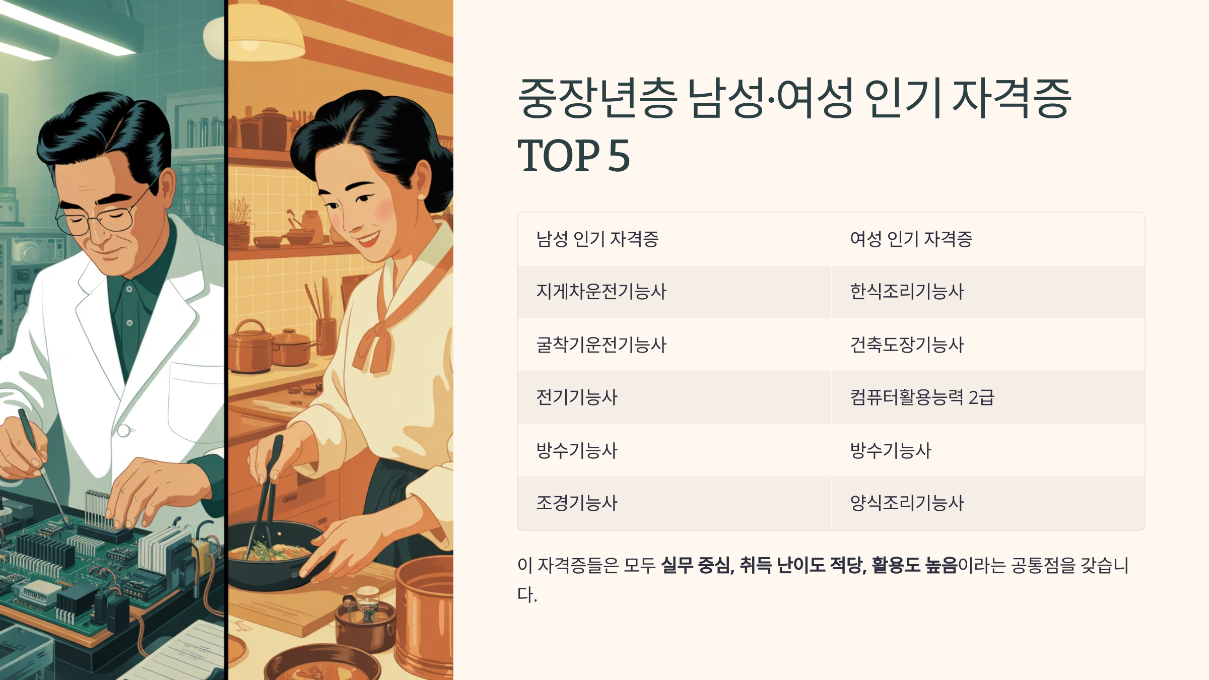 🔍 중장년층 남성·여성 인기 자격증 TOP 5