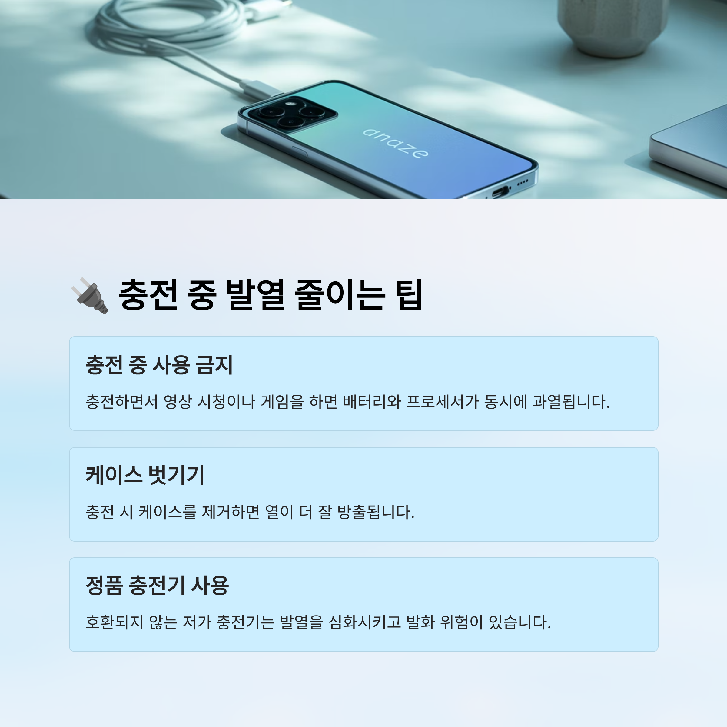 스마트폰이 가장 뜨거워지는 순간 중 하나가 바로 충전할 때예요. 특히 고속 충전 중엔 내부 발열이 급격히 올라가죠. 충전 습관을 조금만 바꿔도 발열을 확 줄일 수 있어요.
