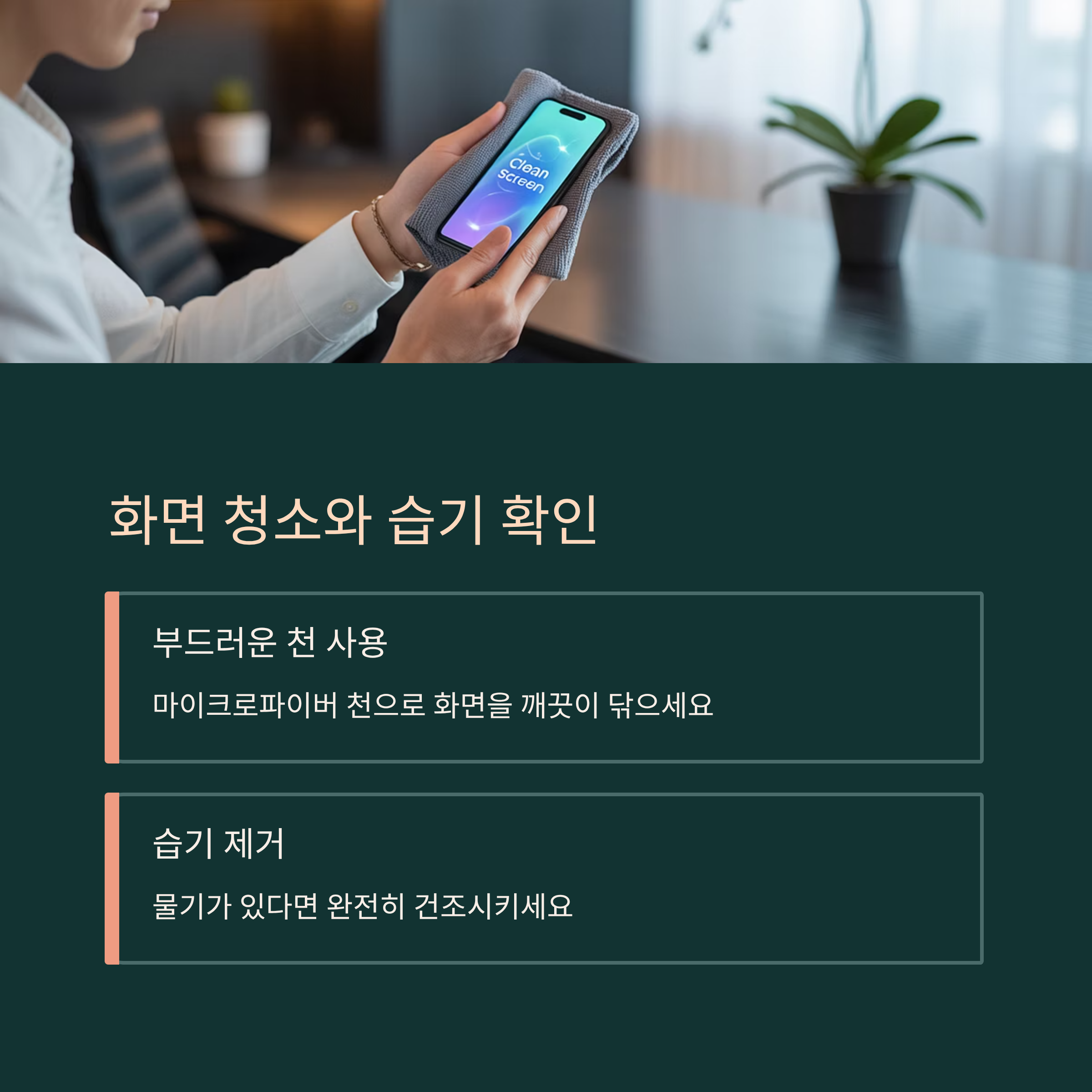 재부팅 후 터치가 정상 작동하면 다행이지만, 여전히 문제가 지속된다면 시스템 이상이 아니라 물리적 문제일 가능성이 커요. 다음 섹션에서는 ‘화면 청소’와 ‘습기 확인’ 등 간단한 점검 방법을 알려드릴게요.