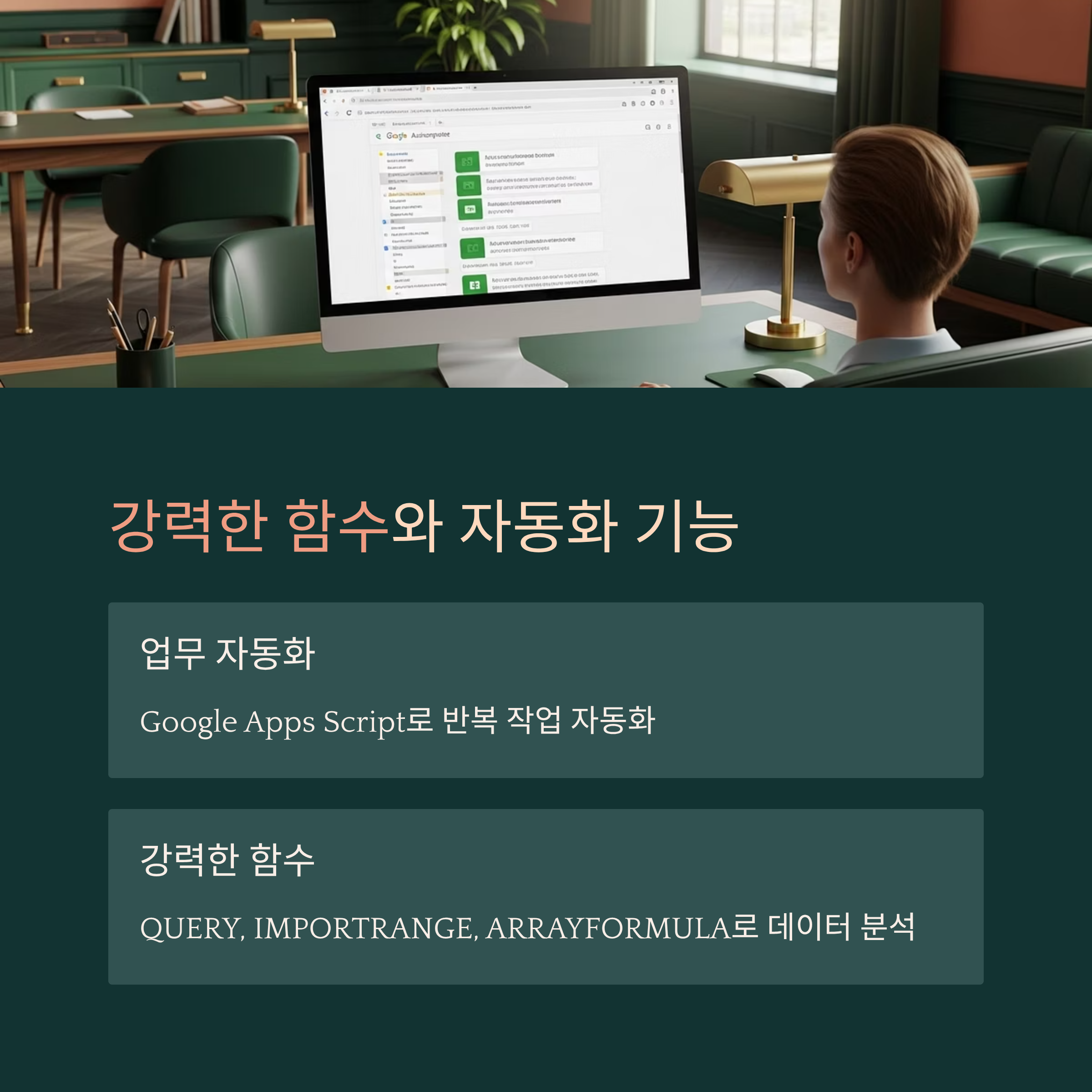 스프레드시트 하나만으로도 여러 웹 기반 서비스들과 함께 쓸 수 있다는 점은, 마치 하나의 플랫폼처럼 활용할 수 있다는 뜻이에요. 단순한 표 계산 도구가 아니라는 걸 느끼게 해줘요!