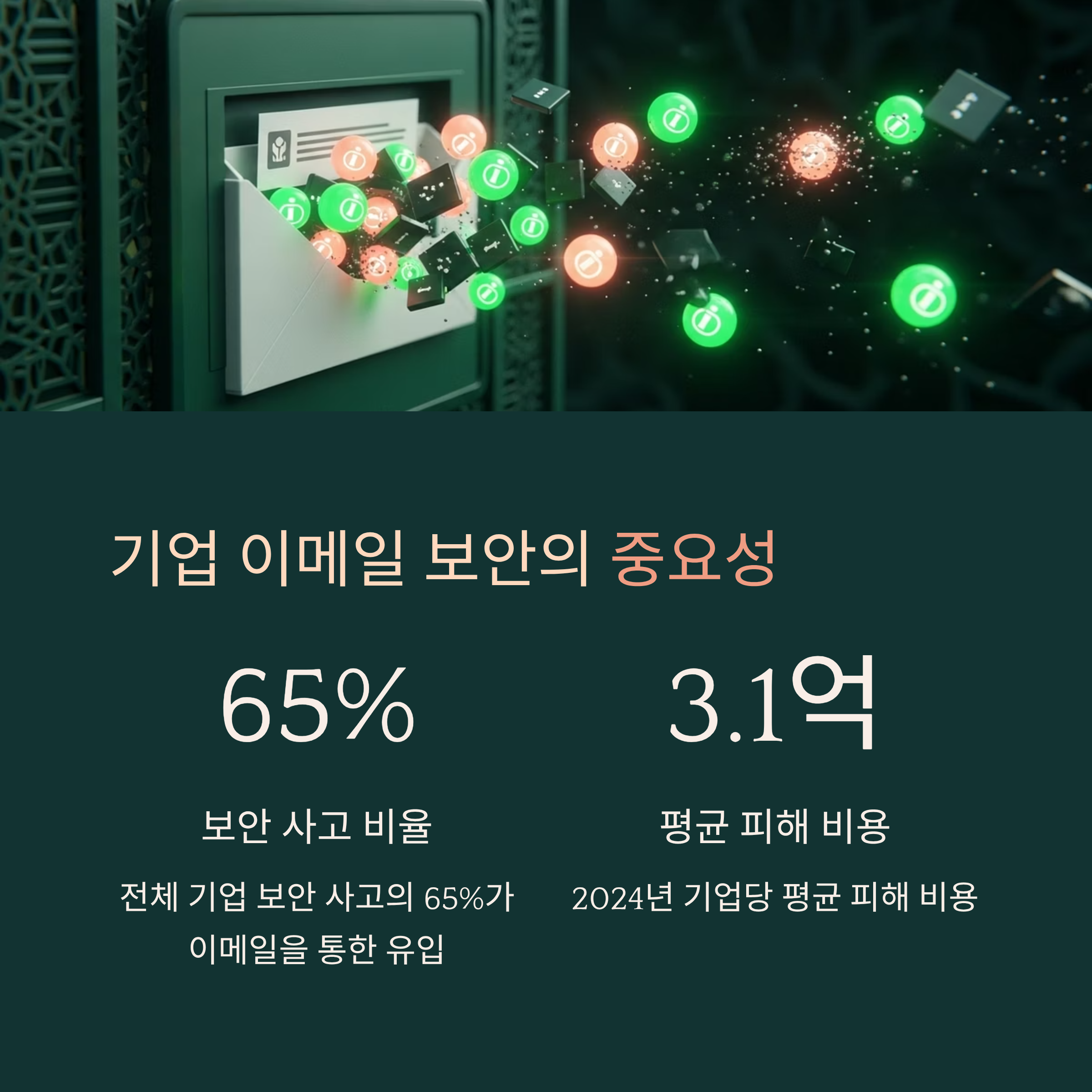최근 몇 년 사이, 메일 보안 사고가 급증했어요. 2024년 사이버보안 통계에 따르면 전체 기업 보안 사고의 65%가 이메일을 통한 유입이었어요. 특히 중소기업은 보안 시스템이 취약한 경우가 많아, 해커들의 주요 타깃이 되고 있어요.