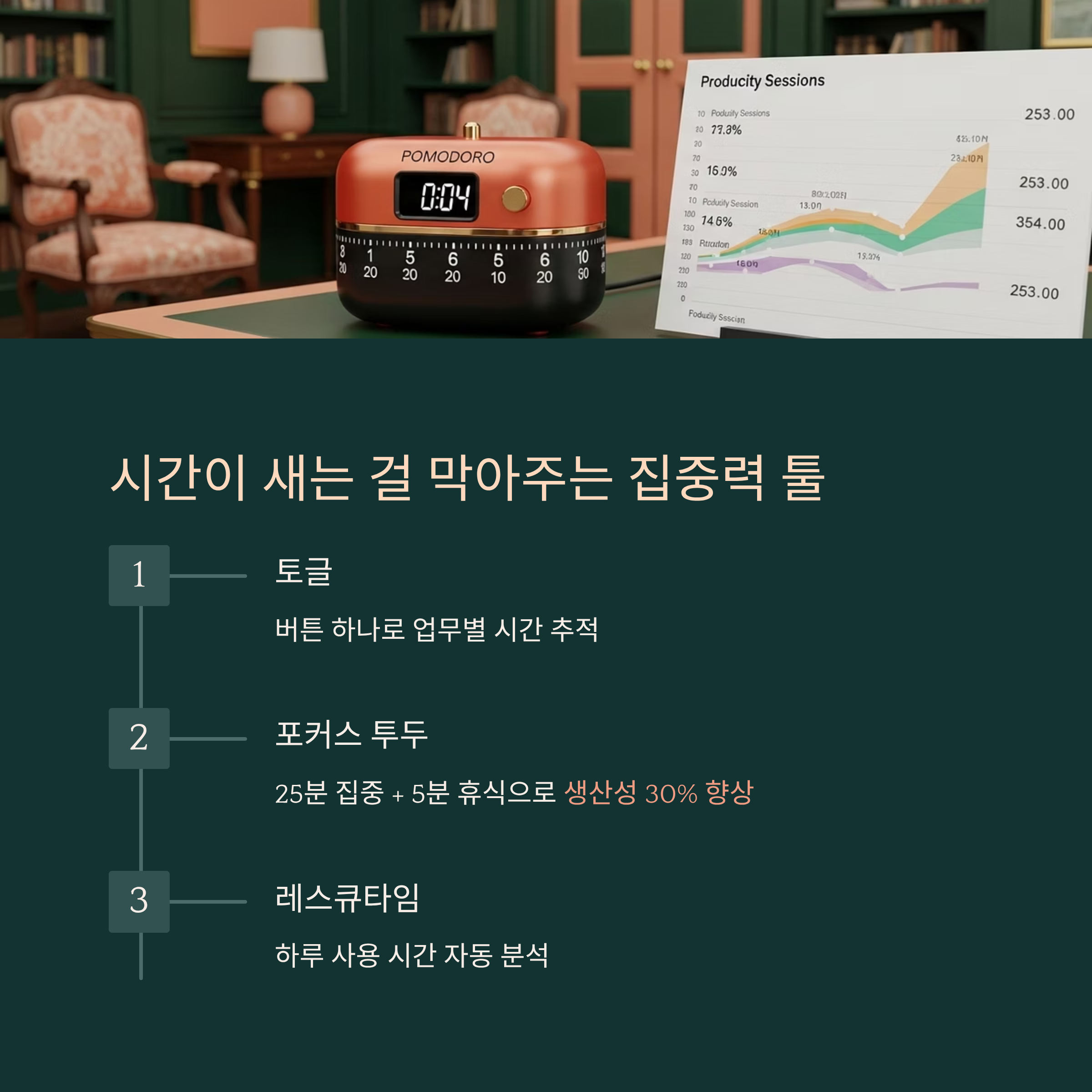 이 세 가지 툴을 적절히 조합하면 진짜 하루가 달라져요. 예를 들어 아침에는 포커스 투두로 뽀모도로 루틴을 돌리고, 오후에는 토글로 프로젝트별 시간 추적, 하루 마무리는 레스큐타임 분석으로 피드백을 하는 방식이에요. 하루의 흐름을 통제한다는 느낌이 드니까 훨씬 주도적으로 일할 수 있어요.