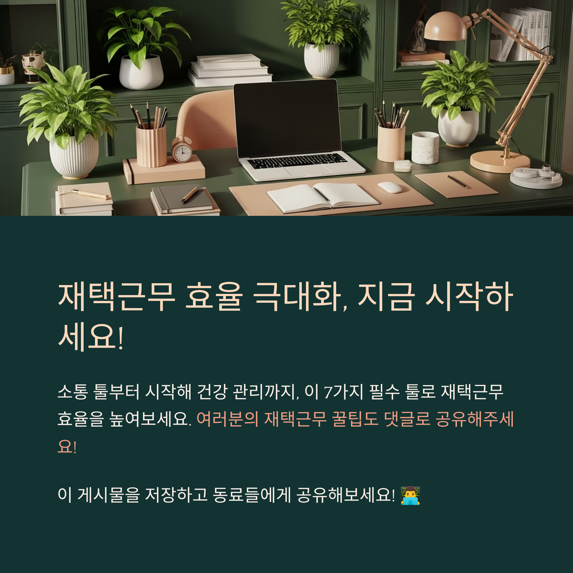 재택근무에서 진짜 중요한 건 '자기 컨디션 유지'라고 생각해요. 일만 잘한다고 끝이 아니라, 지속 가능한 근무 환경을 만드는 게 핵심이죠. 운동, 명상, 루틴 관리 같은 작은 노력이 쌓이면 신체 건강뿐 아니라 정신 건강도 함께 좋아진답니다. 💪