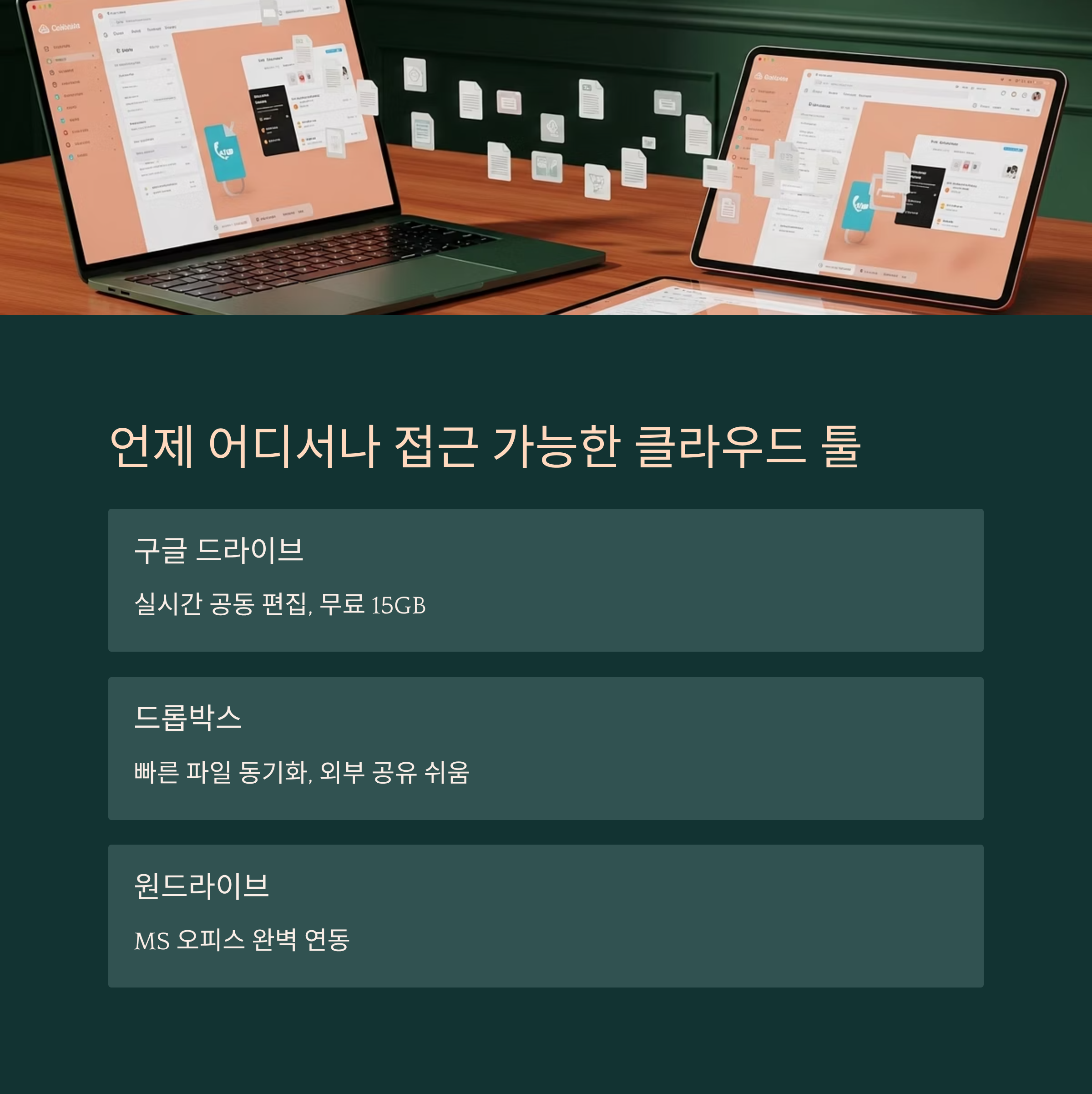 | OneDrive | MS Office 연동 | 5GB | 오피스 사용자 최적 | UI가 복잡할 수 있음 |