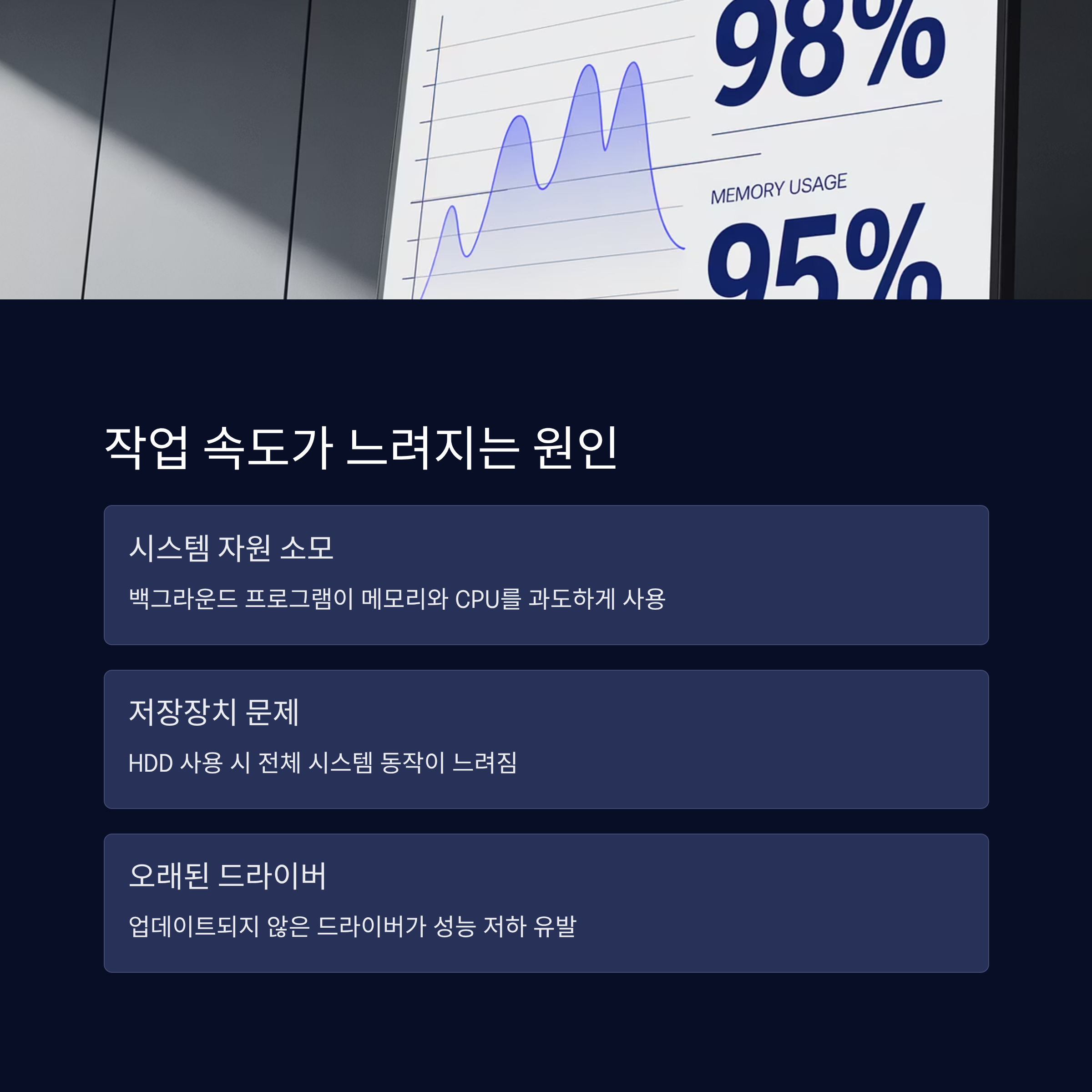 보통 부팅과 동시에 실행되는 앱, 필요 없는 서비스, 무거운 바이러스 백신 프로그램이 시스템 속도를 갉아먹고 있어요. 사용자는 이를 인식하지 못하고 “왜 이렇게 느리지?” 하고 답답해하는 경우가 많죠.