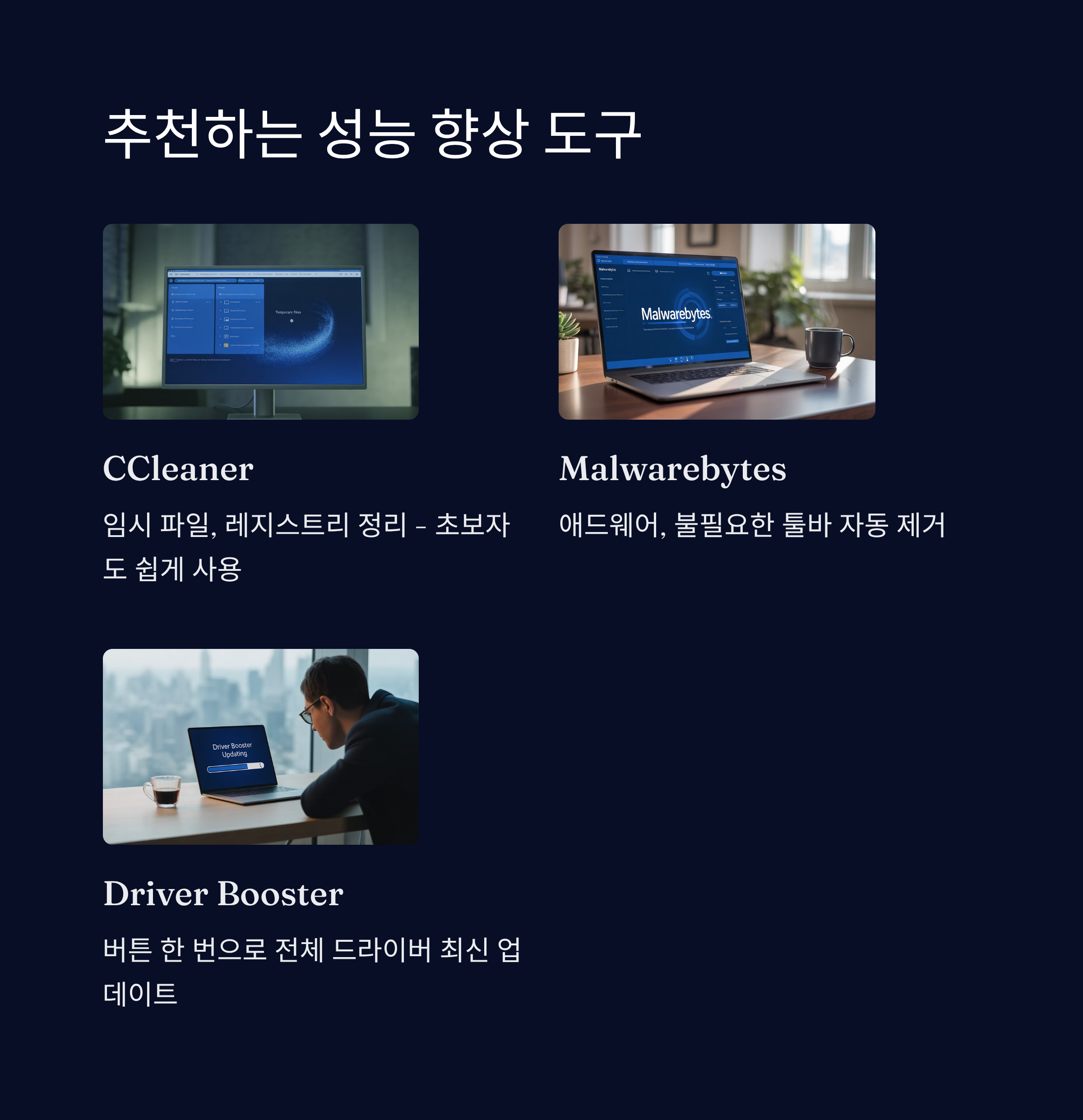 윈도우 자체 기능만으로도 속도 개선이 가능하지만, 전문적인 도구를 함께 사용하면 훨씬 더 강력한 성능 향상이 가능해요. 특히 시스템 청소, 레지스트리 정리, 드라이버 업데이트 같은 부분은 외부 도구의 도움이 큰 편이에요.