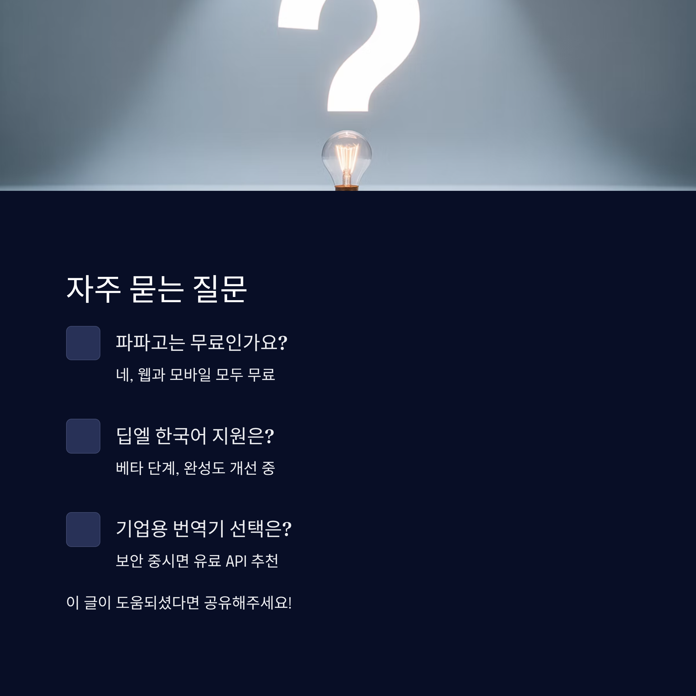 결론적으로, '어떤 언어를 번역하느냐'에 따라 최적의 선택이 달라져요. 한국어-영어는 파파고, 다국어 번역은 구글, 고급 문체는 딥엘이 적합하다고 볼 수 있어요. 🙌