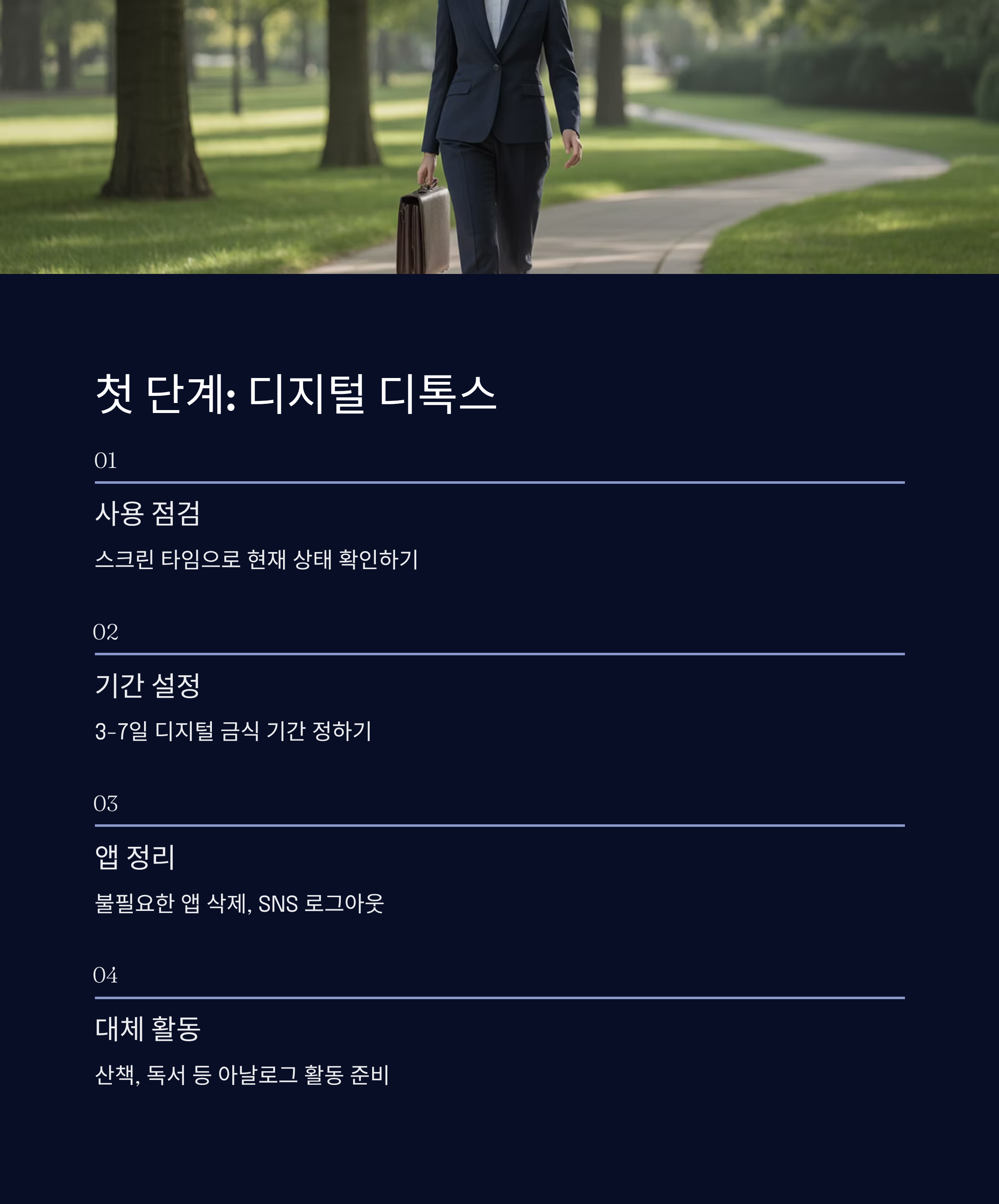 먼저 나만의 ‘디지털 철칙’을 만드는 것이 중요해요. 예를 들면 "침대 위에서는 스마트폰 사용 금지", "식사 시간엔 기기 끄기", "자기 전 1시간 전에는 무조건 스마트폰 종료" 같은 규칙을 정해두고 실천해보세요. 사소하지만 큰 차이를 만들 수 있답니다.