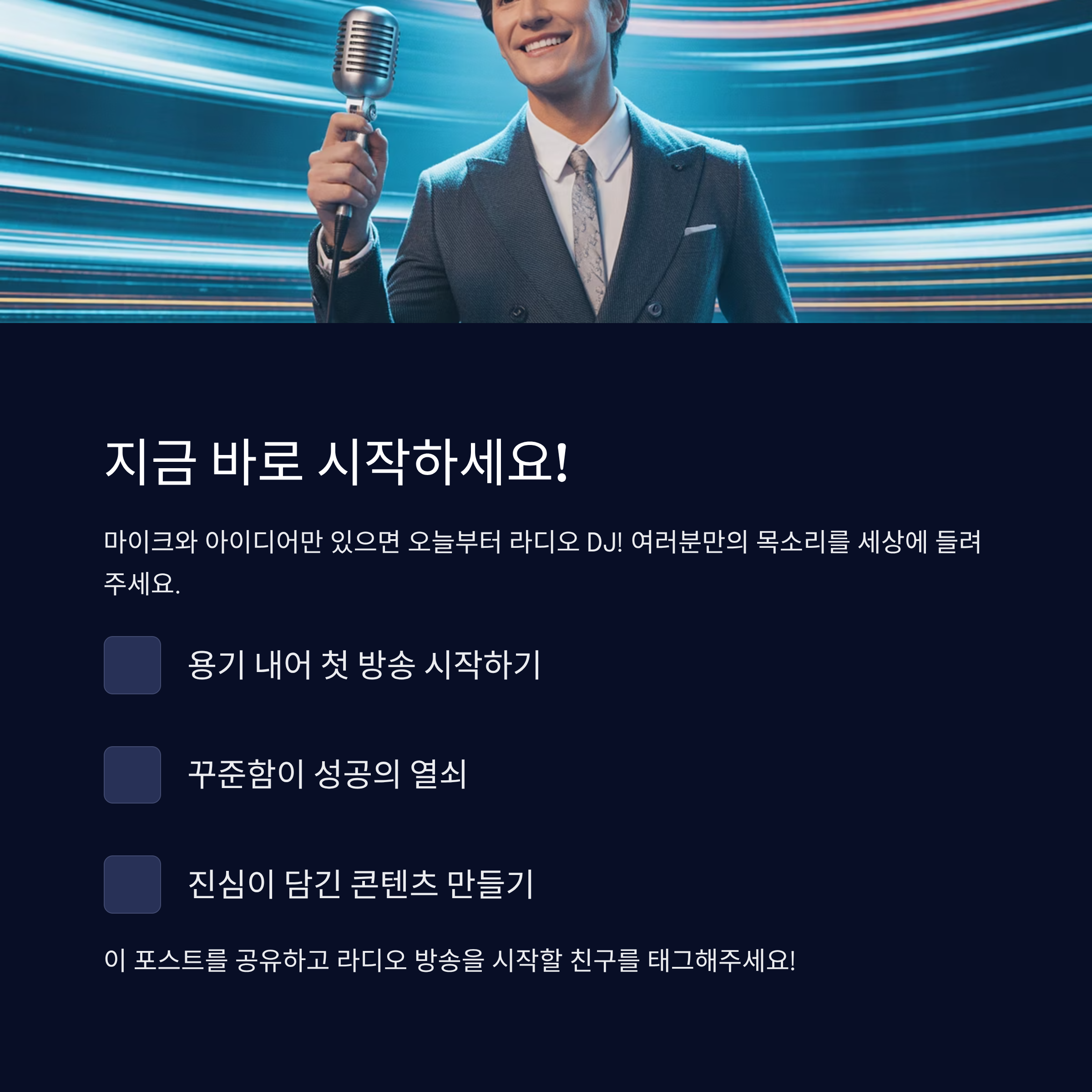 지금까지 초보자를 위한 인터넷 라디오 방송 시작법을 쭉 살펴봤어요! 장비 선택부터 콘텐츠 기획, 홍보와 수익화까지 차근차근 준비하면 누구나 멋진 방송을 만들 수 있답니다. 용기 내서 여러분만의 목소리를 세상에 들려주세요 📻💬