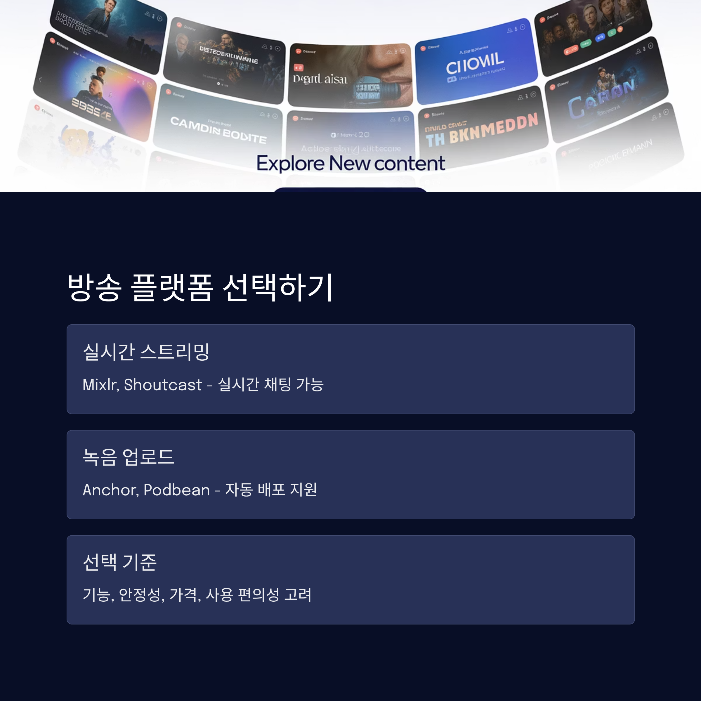 먼저 실시간 스트리밍 중심의 플랫폼으로는 Mixlr, Shoutcast, Castbox Live 등이 있어요. 이들은 간단한 셋업만으로도 실시간으로 음성을 송출할 수 있고, 실시간 채팅으로 청취자와 소통도 가능하답니다 🎧