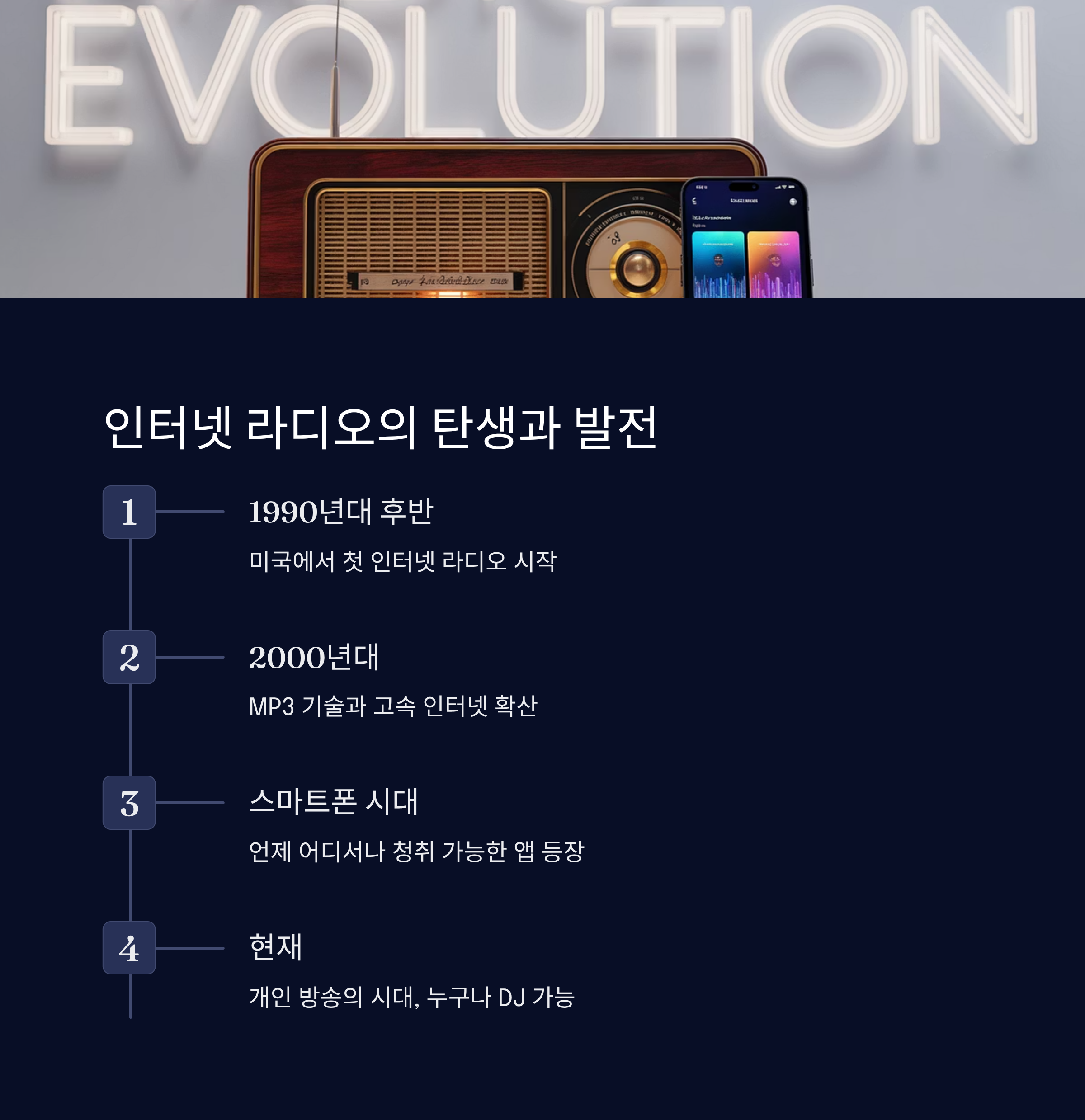 이처럼 인터넷 라디오는 과거의 라디오에서 벗어나, 훨씬 더 개인화되고 전문적인 미디어로 진화했어요. 이제 남은 건 여러분의 목소리와 이야기를 세상에 들려주는 일뿐이에요!