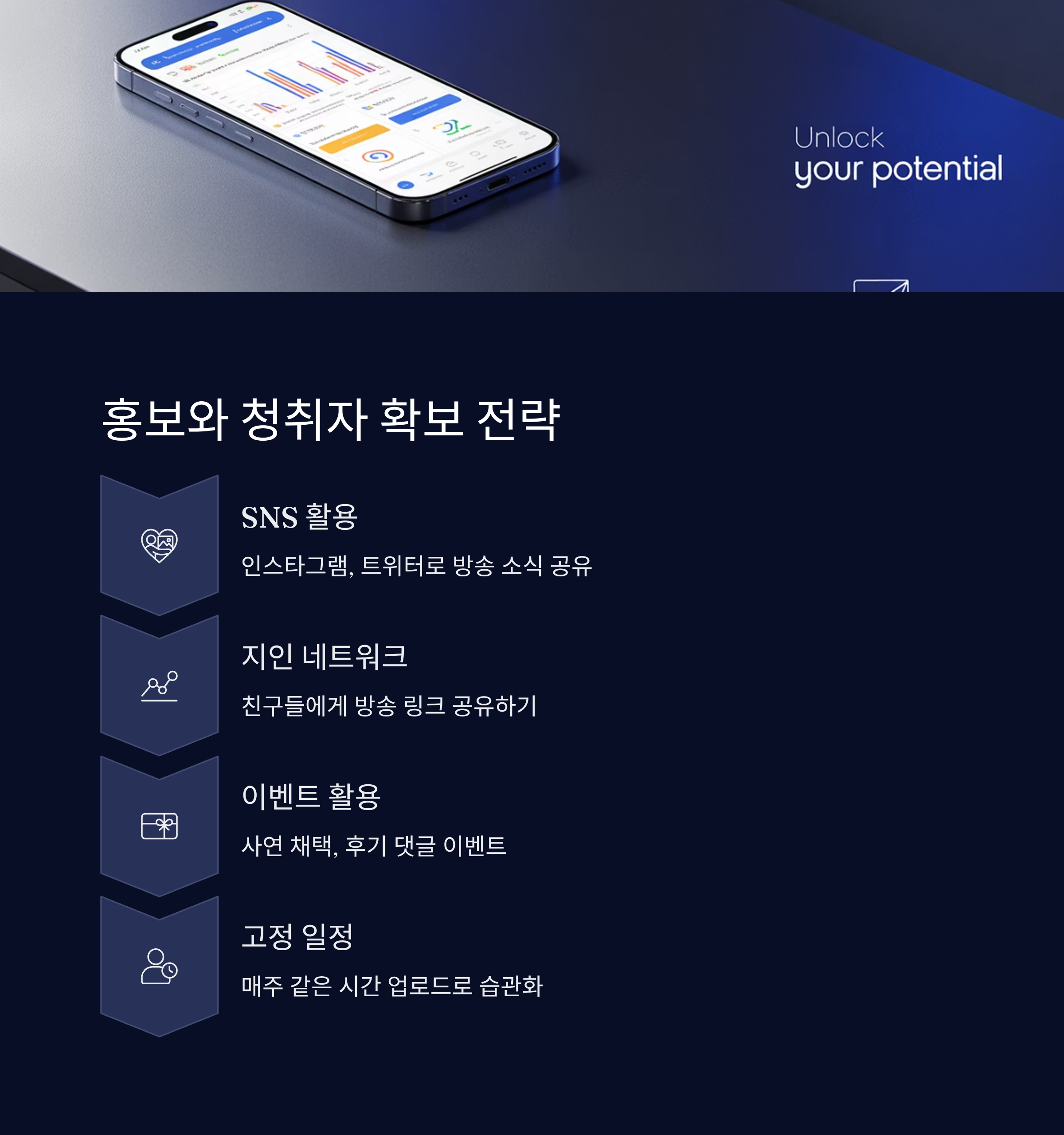 청취자 확보는 단기간에 되는 일이 아니에요. 하지만 진심이 담긴 방송, 꾸준한 홍보, 성실한 업로드가 쌓이면 어느 순간 '단골' 청취자가 생기기 시작해요. 그때부터 진짜 재미가 시작된답니다 😊